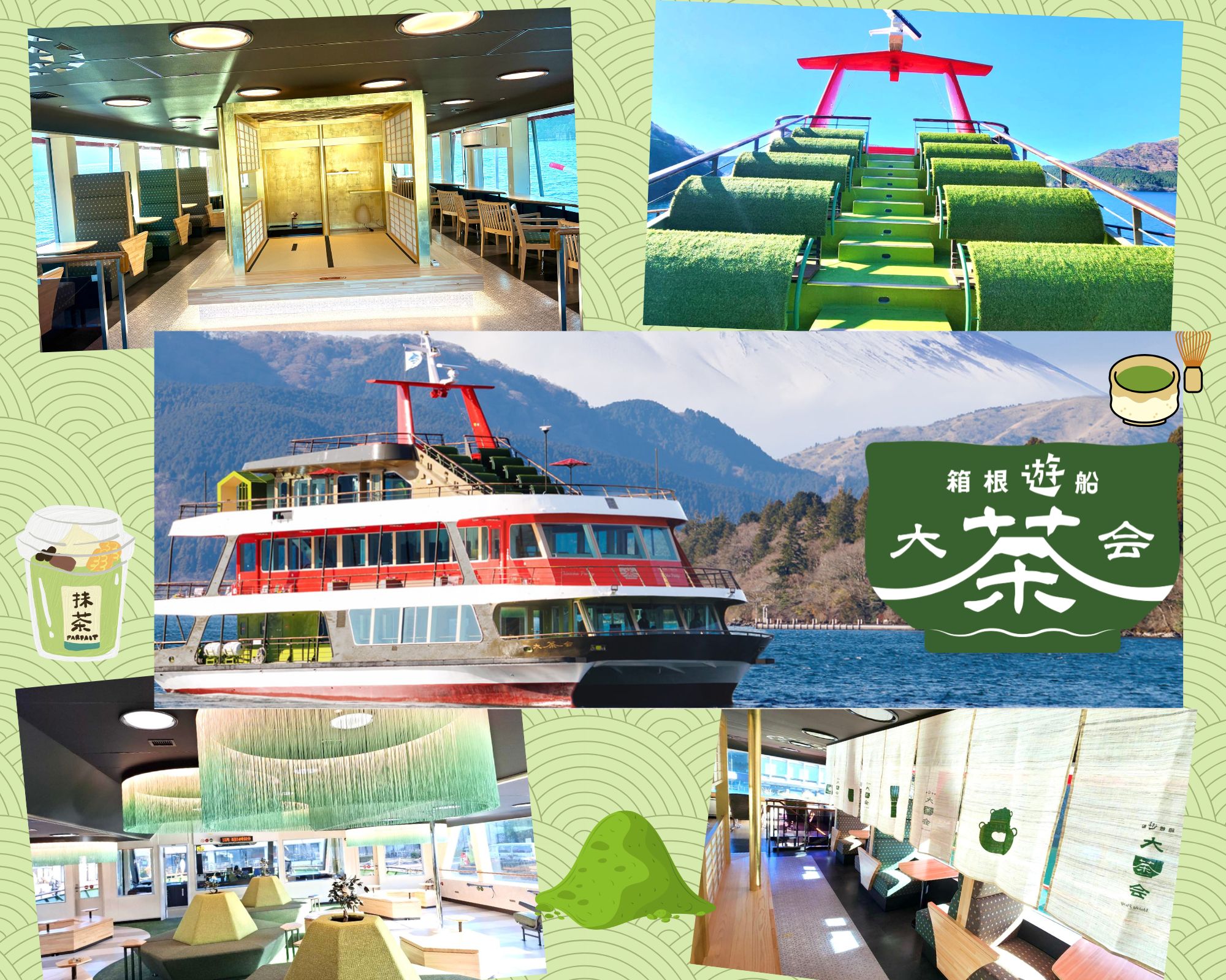 此外,船內一樓的 「茶店」 提供多款以抹茶為主題、非常適合船旅享用的飲品與甜點。