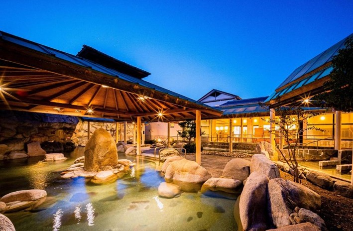 於位於道後平原寧靜的田園風光之中,是一處靜謐的休憩勝地。這裡可以眺望東溫阿爾卑斯山的壯麗景色,以及從2億年前地層湧出的溫泉,與大自然融為一體,除了露天浴池、大浴場、桑拿,還有咖啡廳、卡拉OK室、美容室、按摩休閒中心等設施,讓您享受一段特別且放鬆的美好休閒體驗,開啟一段遠離塵囂的療癒之旅。